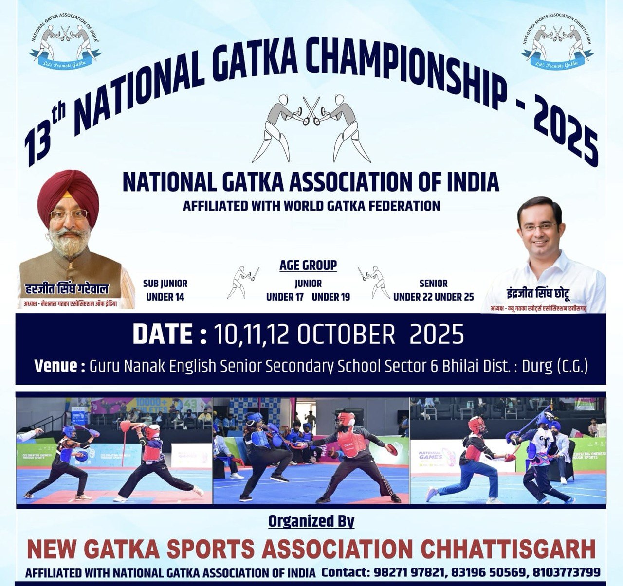 Chandigarh, October 2, 2025: The National Gatka Association of India (NGAI), affiliated with World Gatka Federation and Asian Gatka Federation, is organising its 13th National Gatka (Men and Women) Championship from October 10 to 12, 2025 at Guru Nanak English Senior Secondary School, Bhilai, district Durg in Chhattisgarh. This national-level martial arts tournament is being organised in association with New Gatka Sports Association Chhattisgarh and would feature participation of Gatka teams from various states competing in a series of thrilling individual and team events in Gatka Soti and Farrie-Soti over three days.